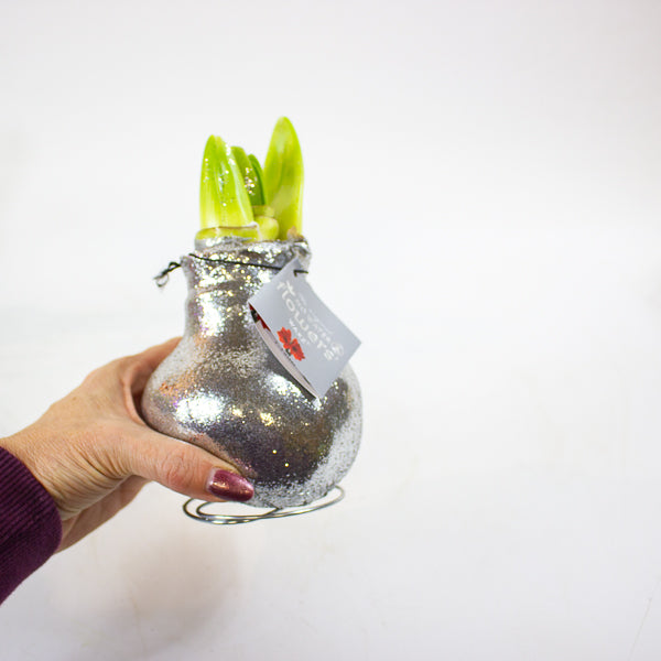 Amaryllis in wax bulbs combine the elegance of premium flowering bulbs with the convenience of pre-potted presentation. Our Glitterz Gold Mix features stunning blooms in warm, luxurious tones—perfect for gifted displays or seasonal décor. Each bulb is encased in decorative wax, eliminating the need for traditional potting whilst maintaining optimal growing conditions. Simply place in a bright location, water sparingly, and enjoy weeks of dramatic, fragrant flowers. Select your preferred variety from our curated mix to suit your aesthetic. Ideal for collectors seeking low-maintenance, high-impact houseplants.