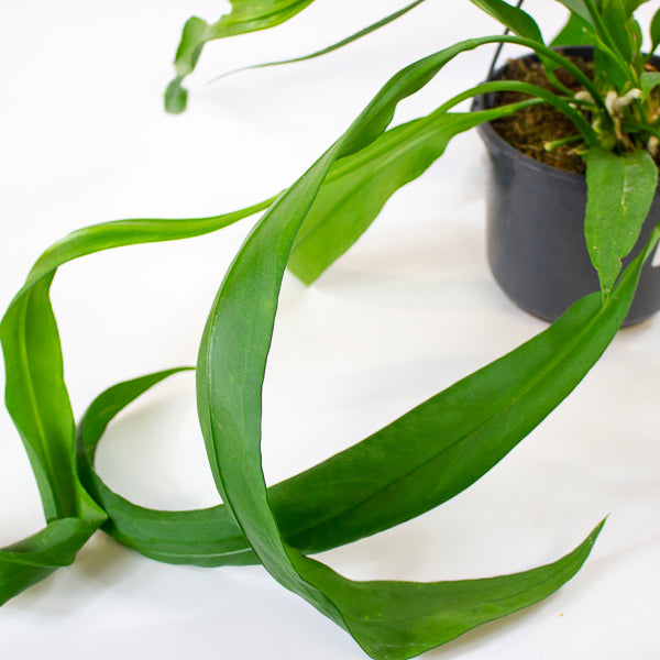 Anthurium vittariifolium is a stunning strap-leaf Anthurium known for its long, narrow, cascading foliage that can reach impressive lengths. This elegant species brings a graceful, tropical aesthetic to any indoor collection and is prized among aroid enthusiasts for its unique silhouette and epiphytic growth habit.
