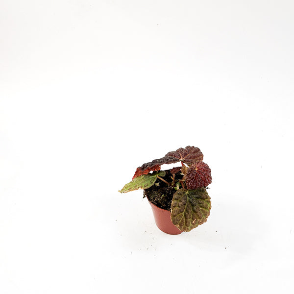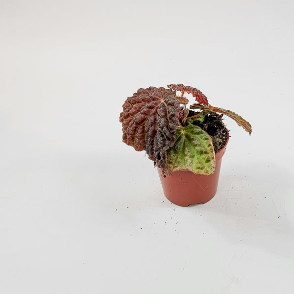 Begonia ferox is an extraordinary foliage Begonia known for its heavily bullate, almost reptilian leaf texture. Dramatic and otherworldly, it is a must-have for collectors of truly unusual plants.