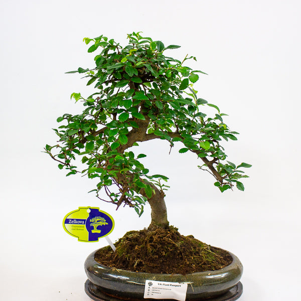 - Full Botanical Name: Mixed genera bonsai including Ficus sp., Carmona sp., Ligustrum sp., and Zelkova sp.