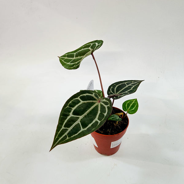 This mixed selection of Anthurium hybrids includes a variety of forms, leaf shapes, and venation patterns. Each plant offers unique character while sharing the luxurious texture and elegance that make Anthuriums so desirable.