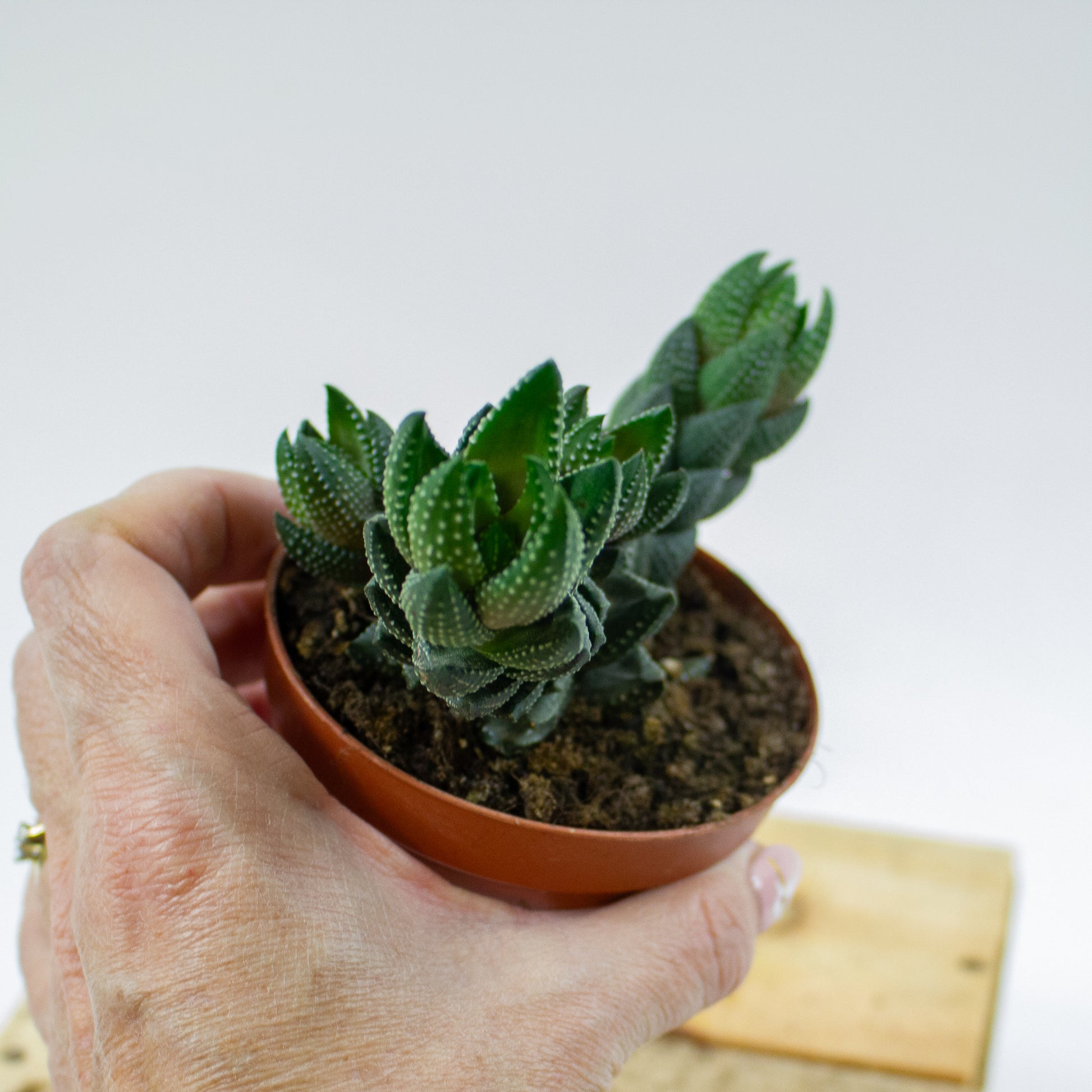 Meet the Zebra Wart Haworthia—the structural wonder of the desert. With her upright, architectural columns covered in pearly white "warts," she looks like a piece of coral carved from jade. She’s tough, compact, and thrives on neglect, making her the ultimate desk buddy!