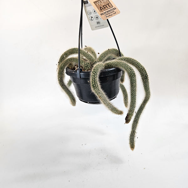 Hildewintera colademononis, often called Monkey Tail Cactus, is a spectacular trailing cactus covered in soft white spines that resemble flowing hair. Its tactile appearance and bright red flowers make it a collector favourite.