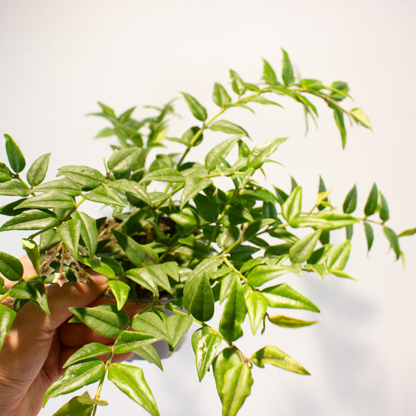 Hoya Bella, also known as the Mini Wax Plant, is a compact tropical vine prized for its small, dark green, glossy leaves and clusters of fragrant, star-shaped pink and white flowers. Native to Southeast Asia, it thrives in bright, indirect light and moderate humidity, making it ideal for small hanging baskets, terrariums, or indoor greenhouses.