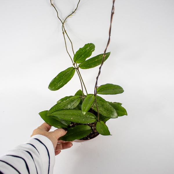 Hoya erythrina is a captivating species of Hoya, celebrated for its unique foliage and delightful blooms. The plant features light green, undulating leaves with prominent dark green veins, sometimes exhibiting a reddish-purple hue under strong light. The undersides of the leaves are adorned with red-purple veins, adding to its visual appeal. When it blooms, Hoya erythrina produces clusters of star-shaped, waxy flowers that are typically light pink with a sweet fragrance. These blooms are a delightful addition to any indoor plant collection.
