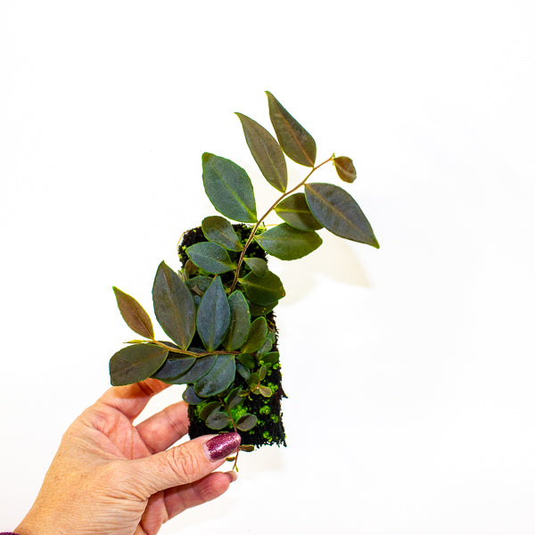 Marcgravia ‘Dark Brown’ is a dramatic shingle vine cherished for its deep chocolate to mahogany-toned juvenile leaves. As it climbs, the plant produces velvety, richly pigmented foliage that adds bold contrast in terrariums and cabinets. Mysterious, elegant, and highly collectible, this variety brings a warm, earthy sophistication to any tropical setup.