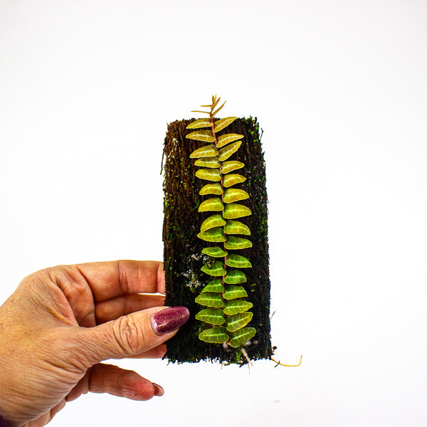 Marcgravia umbellata ‘Pink’ is a stunning shingling vine prized for its soft blush-pink new growth and perfectly layered leaves. As it climbs, the foliage matures into deeper greens while retaining a delicate pastel glow at the tips. Ideal for terrariums, cabinets, or moss poles, this species adds a gentle tropical elegance and eye-catching colour gradient.