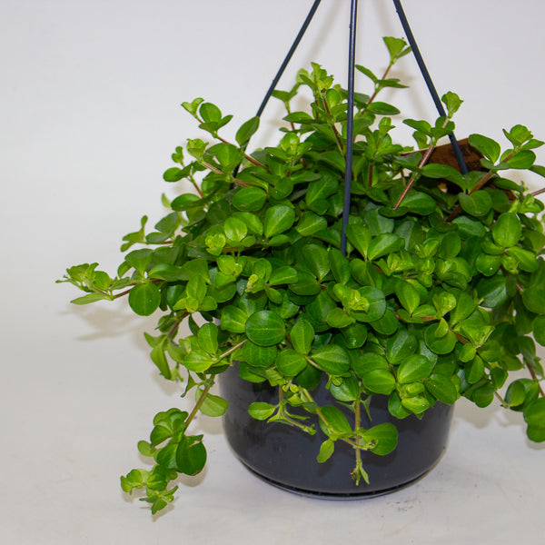 Peperomia rotundifolia is a charming trailing plant with small, round, succulent-like leaves that create a soft, cascading effect. Perfect for terrariums, hanging pots, and shelves, it is easy-care and compact, making it a favourite among beginners and collectors.