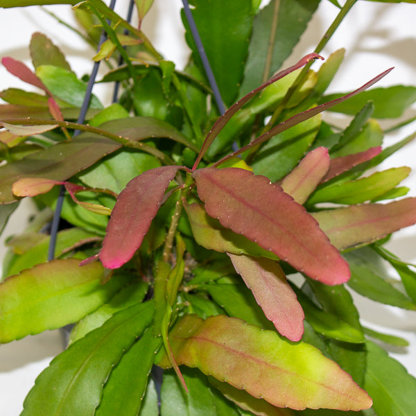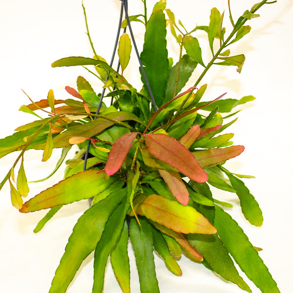 Rhipsalis ‘Red Coral’ is a striking epiphytic cactus known for its coral-like branching stems that blush red or orange under bright light. Its sculptural, sea-inspired form and soft, spineless texture make it a unique, easy-care favourite for modern interiors. Light, airy, and wonderfully architectural, it thrives in bright filtered light and adds a bold splash of colour to any space.