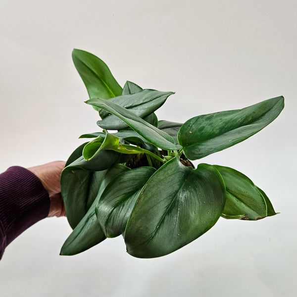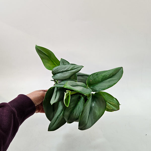 Scindapsus treubii ‘Moonlight’ is a highly desirable foliage plant with thick, satin-like leaves washed in silvery-green tones. Slow-growing and refined, it offers understated luxury and strong visual texture.