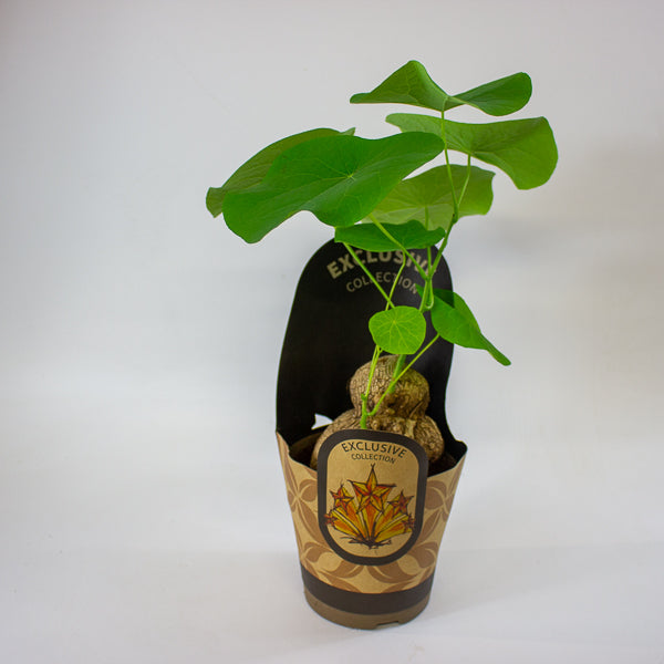 Stephania suberosa is a fascinating caudiciform plant with a corky, textured caudex and delicate vining foliage. Unique and sculptural, it is highly prized in both the houseplant and bonsai communities.